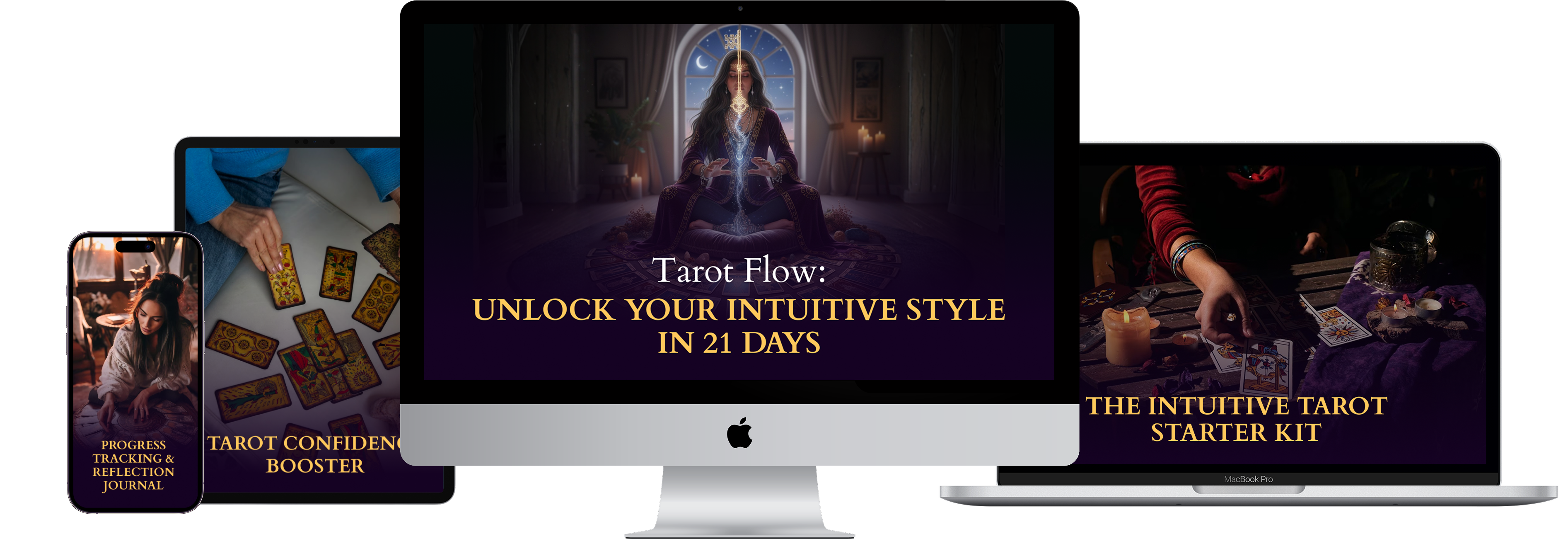 Grab Tarot Flow: Unlock Your Intuitive Style in 21 Days and take the first step toward confident, authentic tarot readings that feel effortless.